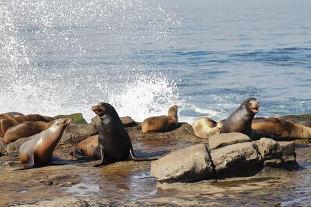 California sea lion Zalophus californianus sunning on the rocks of La Jolla Cove in Southern California