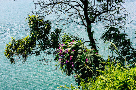 Tourist relaxing on the beautiful lake Atitlan in the Guatemala, Central America