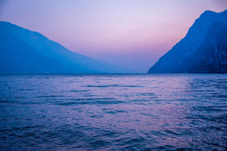 the moment before sunset on Lake Garda, Trento, Italy