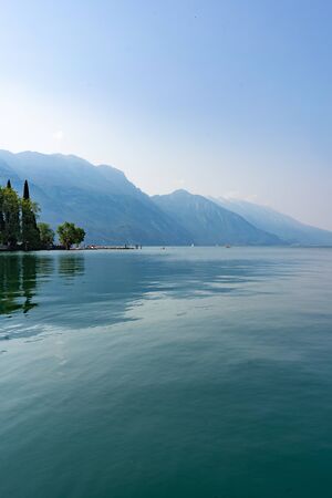 Scenic landscape of beautiful Garda lake and mountains, Italy. Nature background