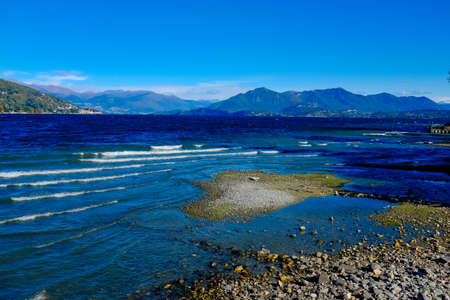view of Lake Maggiore the second largest lake in Italy, windy day with waves