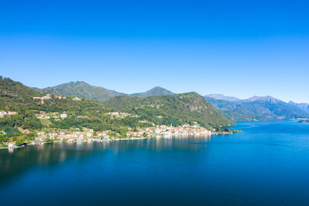 Panorama of Lake Como, with Dervio and the northern part of Lake Como.