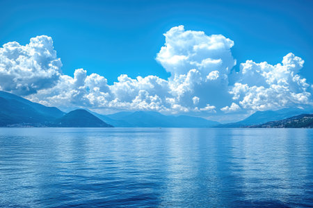 Beautiful seascape is showing the immensity of nature with a deep blue sea and a blue sky full of white fluffy clouds