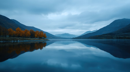 Quiet scenery of mountains and lakes in autumn