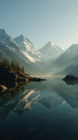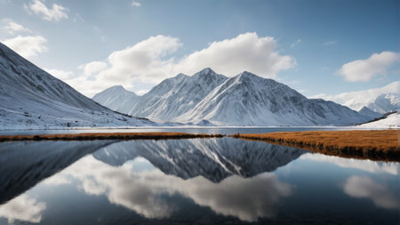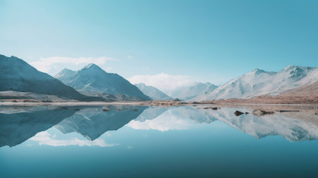 Breathtaking Remote Landscape Featuring Majestic Mountain Reflections in a Serene, Calm Lake