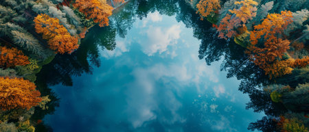 Bird's-eye view of a serene lake with reflections of the sky,