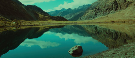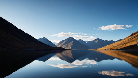 The tranquil mountain range and calm lake create a harmonious natural landscape. Generative AI
