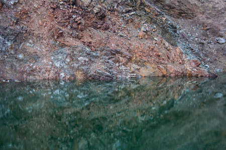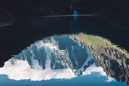 Mountain lake, rocks are reflected in water surface