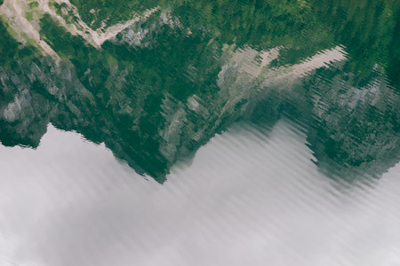 Serene mountain reflection creating a cinematic pattern texture on the calm lake surface