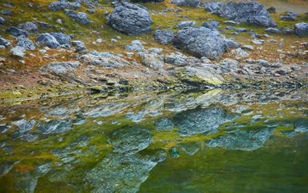 Lonely stone landscape in a mountain lake