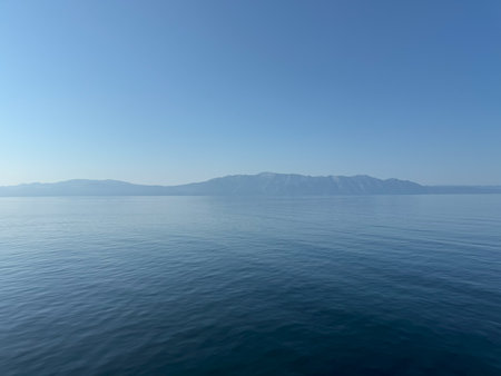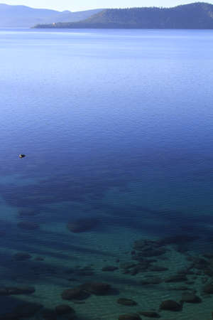 Lake Tahoe Summer Panorama. Clear Blue Water of the Lake Tahoe in California Sierra Nevada Mountains, USA.