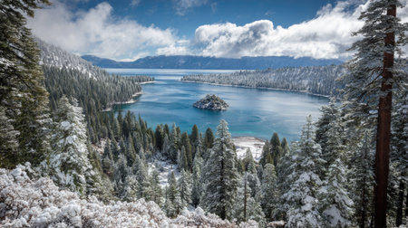 Lake Tahoe in winter, Sierra Nevada, California, United States