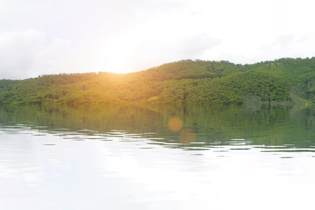 Beautiful lake and mountain in summer season in Hokkaido Japan
