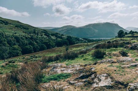 Scenic landscape of the Lake District, famous for its glacial ribbon lakes and rugged mountains. Popular vacation destination in Cumbria, North West England. Tourist attractions in Great Britain.