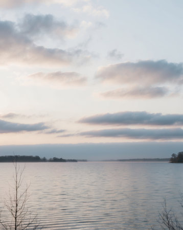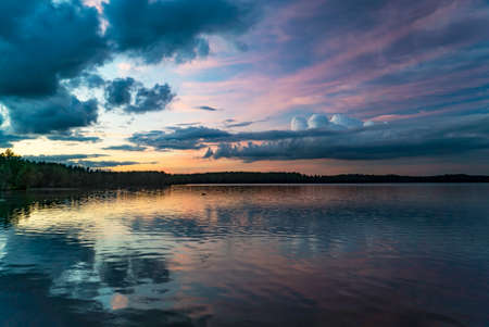 Calm sunset and clouds over lake in finland