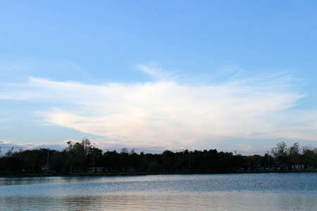Sky with beautiful clouds reflected in the calm water of the lake