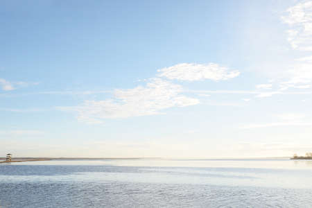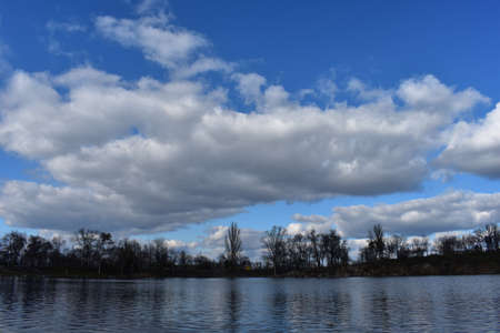 Landscape, lake and blue sky in early spring. Studio Photo
