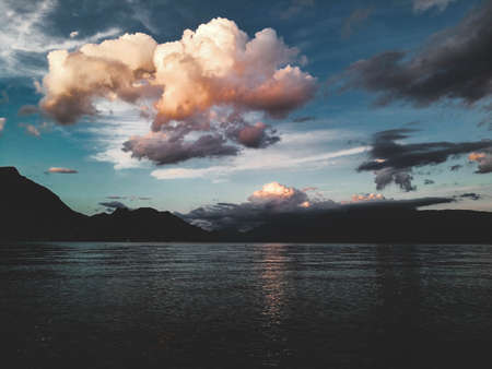 Sunset spring Lake Constance with beautiful clouds