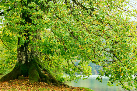 Autum forest lake Kozjak in Plitvice National Park in Croatia