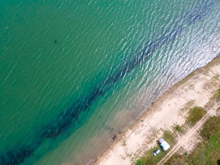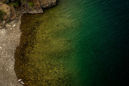 Aerial view of a rocky shore of Lake Baikal. Russia