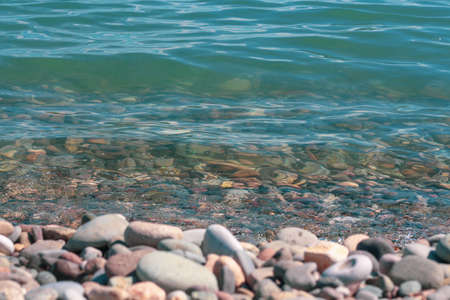 Sea stones water background in a morning sunlight. Sea stones background in a morning sunlight