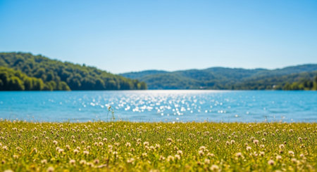Lake Panoramic Beach Landscape background - Ai Generated