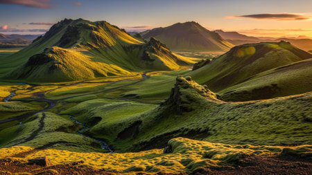 Majestic mountains covered with moss in Iceland highlands