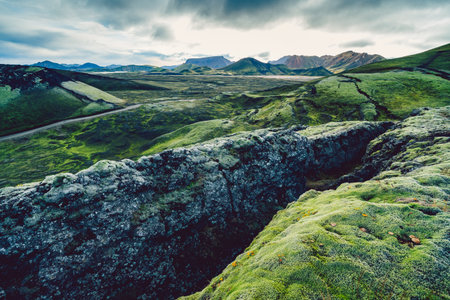 Volcanic landscape in Lakagigar, Iceland highlands