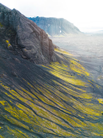 The beautiful unique aerial view landscape of Thorsmork in highland of Iceland.