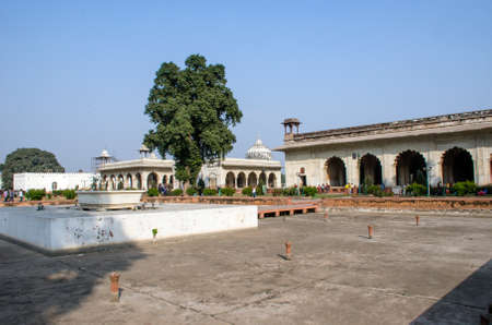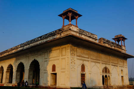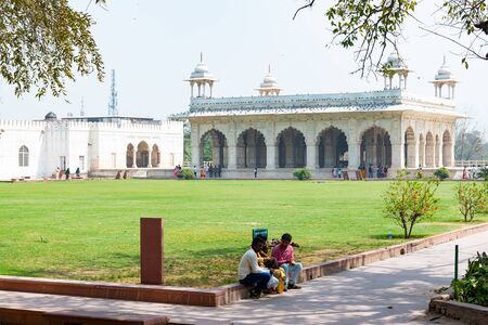 New Delhi, India, Mar 30 2019 - Tourists stroll around the Divan-i-Khas and Khas Mahal, Red Fort complex, Old Delhi, Delhi, India