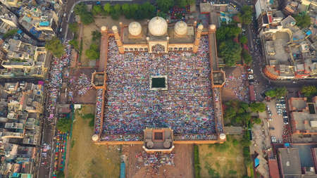 Delhi, India - April 15, 2022 : Unidentified Indian tourists visiting Jama Masjid during Ramzan season, in Delhi 6, India. Jama Masjid is the largest and perhaps the most magnificent mosque in India