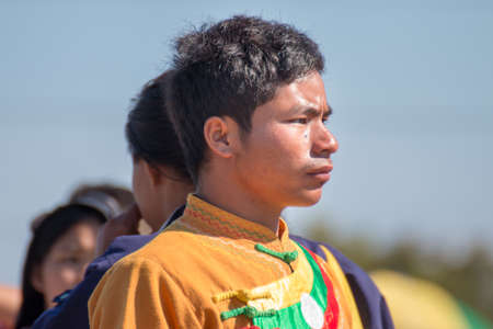 Thoet Thai, Chiang Rai - THAILAND, December 12, 2018 : Group of Shan or Tai Yai (ethnic group living in parts of Myanmar and Thailand) in tribal dress do native dancing in Shan New Year celebrations.