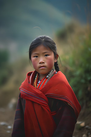 Unidentified Hmong girl in the mountains. Hmong people suffer of poverty due to the bad economy