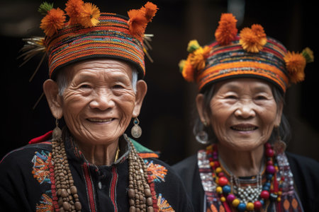 woman smile face old tribe costume traditional culture portrait ethnic asian. Generative AI.