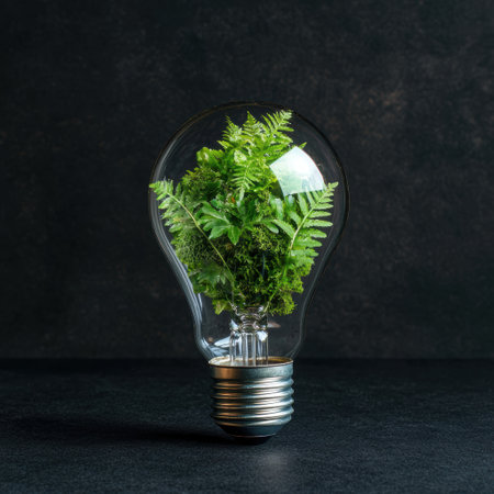 Sustainable energy concept with plants growing inside a light bulb