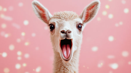 Funny Llama with Shocked Expression and Soft Fur on Pastel Background