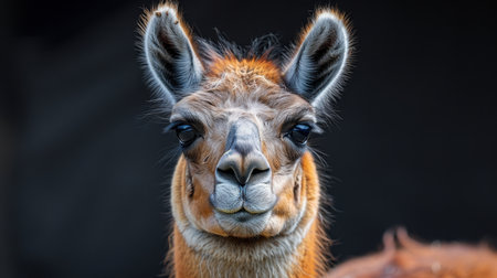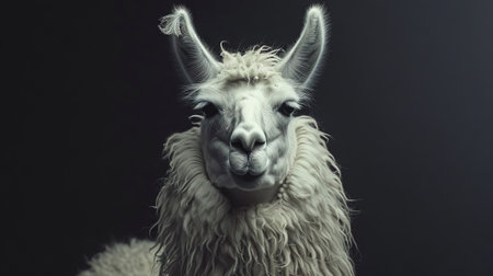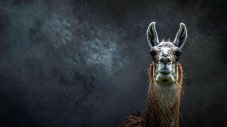 Majestic llama portrait against dark background