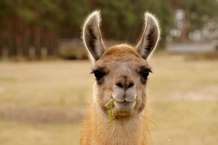 Portrait of an alpaca. Alpaca close up.
