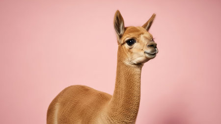 Llama (Vicugna pacos) on pink background