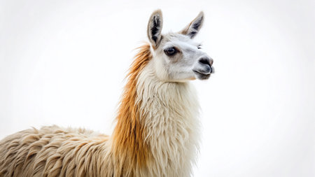 Panoramic Photo: Llama Standing Against White Background – Perfect for Advertising & Design