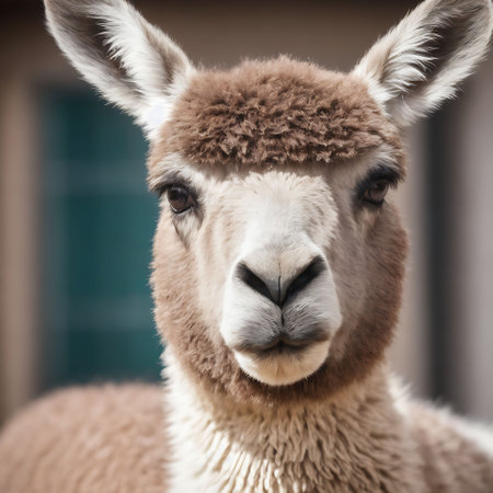 A closeup shot of looking brown llama face