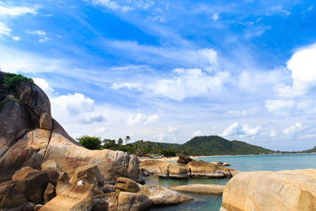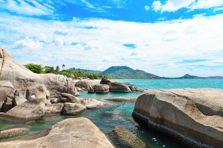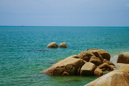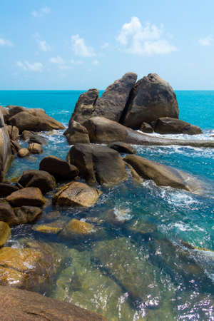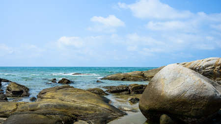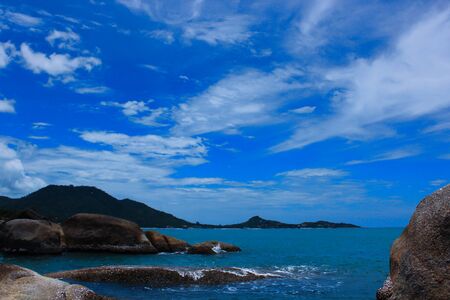 Sea landscape with rocks in the foreground and sky in the background. Therapeutic natural scenery gives a feeling of relaxation. At Koh Samui, Surat Thani Province, Thailand.