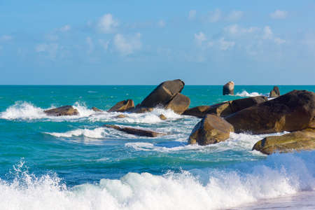 Blue sea with large boulders in the water. beautiful seascape. Travel and tourism.