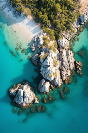 Generative AI : Aerial view of a rock on Nanarup little beach Albany Western Australia Australia