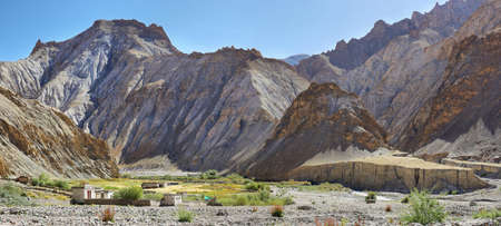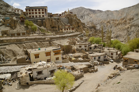 Panoramic view of Lamayuru buddhist village with old Monastery, in Ladakh region, Jammu and Kashmir India