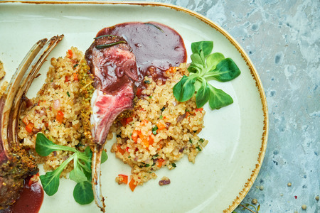Grilled lamb rib chops on the plate