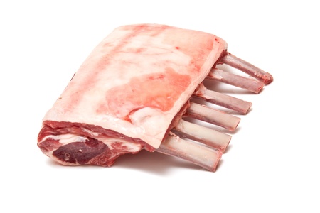 Raw lamb rack, isolated on white background.