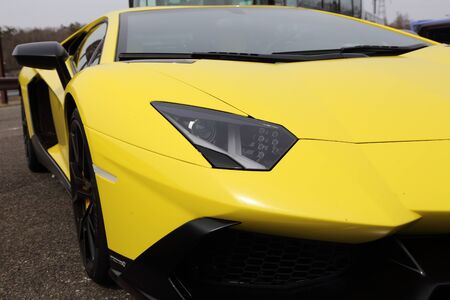 KYOTO, JAPAN -APRIL 12, 2015: The Front view and Headlight of Lamborghini car on April 12, 2015 in Japan