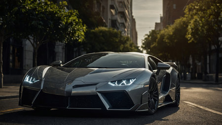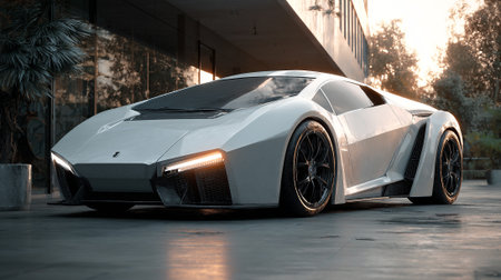 Sleek White Supercar Parked Outside Modern Building Radiating Luxury and Sophistication