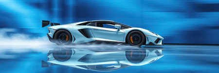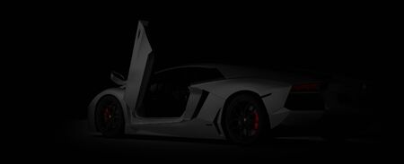 Almaty, Kazakhstan. Juli 08: Lamborghini Aventador. luxury stylish sport car on dark, black background. 3D render